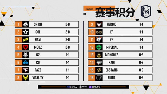 PGL哥本哈根Major正赛阶段首日比赛已结束,看看各支队伍的战况如何吧~