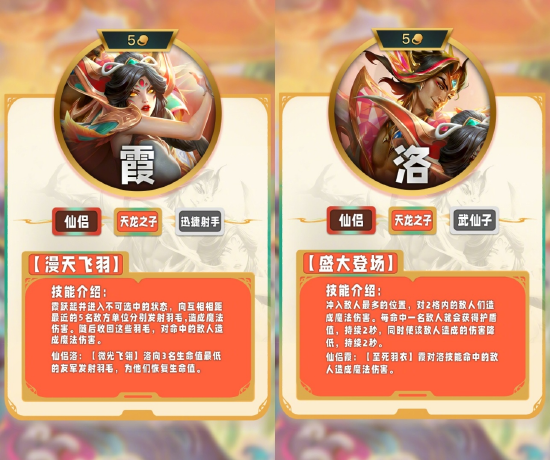 另外,拥有独特仙侣羁绊的霞与洛则是成为了一个弈子。在使用他们的时候,你可以选择进攻犀利的霞,也可以选择防守控场的洛。值得一提的是,这也是云顶之弈首次一个弈子中可以使用两个英雄。