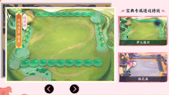 “笋尖爆炸”、“桃花扇”等中国风宝典专属进攻特效;“天荫园”、“竹间清茗”国风味十足的棋盘。一切尽在新赛季新宝典中!