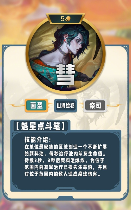 在弈子方面,异画师彗将首次登陆云顶之弈。拥有画圣羁绊的他,可以在特定回合数后,根据备战席上的弈子创造出一个一星的复制品。