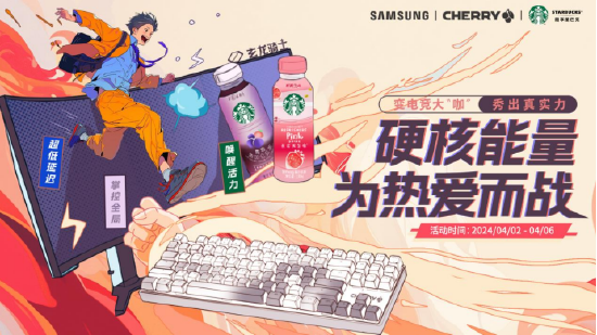 全球专业键盘制造品牌CHERRY,携手三星X星巴克,打造硬核能量,为热爱而战!CHERRY樱桃MX8.2XAGA高端电竞机械键盘,三星玄龙骑士高清电竞显示器,星巴克专业赋能咖啡饮料,让你变身电竞大咖,秀出真实力,超低延迟,最广视角掌控全局,提神醒脑能量补充。2024年4月2日至4月6日,惊喜福利,限时放送!