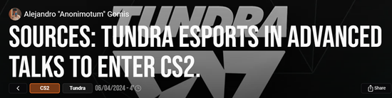 根据媒体的报道,Tundra俱乐部正讨论进军CS赛场。虽然他们的阵容尚未确定,但俱乐部一直在寻找可以稳定成为Top20战队的阵容。