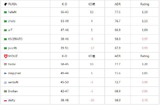 来到自己的选图,MOUZ在防守端可谓是铁板一块,先防守的他们半场10-2领先。但是来到进攻端他们的进攻展开并不顺利,反而FURIA这边arT、yuurih和chelo三人状态火热带领队伍一路追分,好在上半场领先够多,MOUZ还是把比赛拖入了加时。加时赛中MOUZ总算稳住了局势,最终16-14拿下了图二。