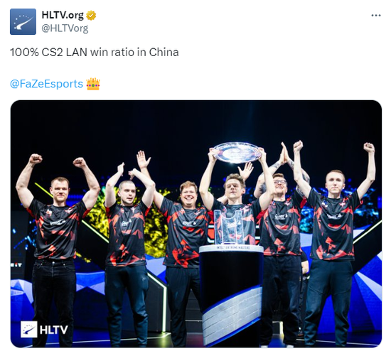 HLTV:“FaZe Clan在中国的CS新版本线下大赛100%胜率。”