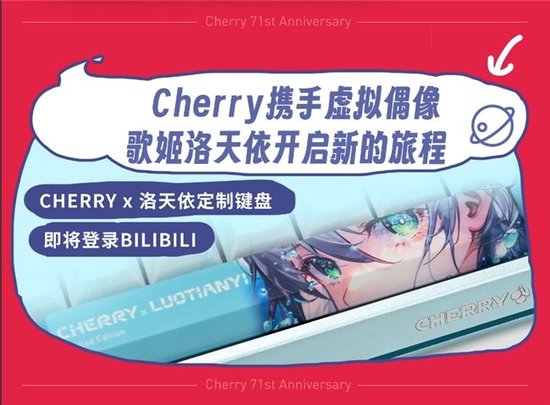 本次超级周年庆,CHERRY还开启了与知名AI歌姬洛天依的联动之旅,推出全新联名键盘,洛天依作为AI虚拟偶像,以其清澈动人的声线和可爱的形象而受到了广泛的喜爱,是虚拟偶像圈的知名人物。联名键盘融合了洛天依全新角色形象,独特的音乐键帽设计,让每次敲击都如同演奏一首动人的乐曲,不仅如此,键盘搭载的MX轴体,更能提供专业级别的反应速度和舒适手感。此外,还有一系列洛天依相关周边礼品同步发售,记得关注官方渠道,别错过这个与洛天依一起创造音乐奇迹的机会。