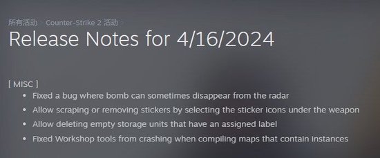 今天CS新版本推送了最新更新,内容不多,以游戏BUG修复和调整为主。内容如下: