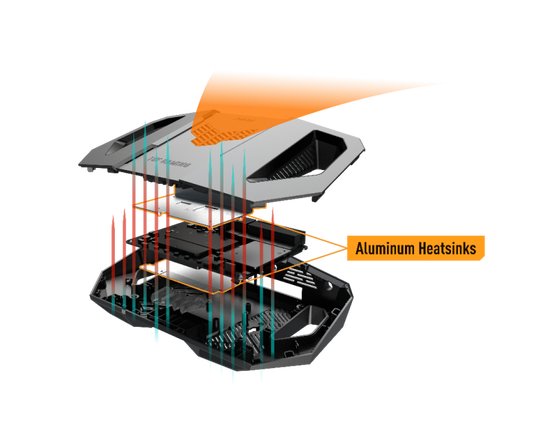 除了硬件层面的升级,此次华硕TUF小旋风BE3600在外观方面也采用了全新的设计语言,通体哑光黑搭配仿无人机的外观设计为其增添了不少进攻性特征,背部还可搭配支架轻松上墙,方便玩家装饰自己的“作战空间”。两侧镂空设计参考了F1赛车的气流动线,搭配喷涂纳米碳涂层的多层铝制散热片极大增强了散热性能,7X24全天候运行也不在话下。