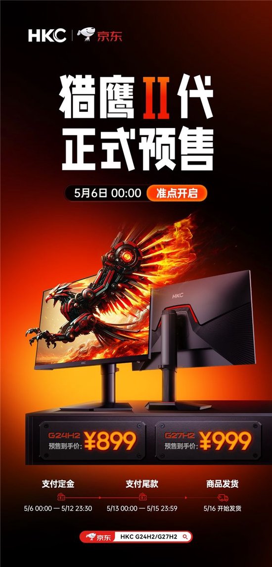 5月6日,HKC正式宣布旗下猎鹰二代新品——G24H2与G27H2正式上线,这两款显示器不仅继承了猎鹰系列一贯的高性能+高性价比的基因,更在配置上进行了全面升级,有望成为电竞显示器市场上的爆款之作。