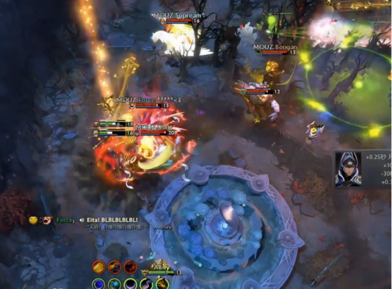但10分钟MOUZ双酱油开始启动抓人,先在中路抓死蓝猫,再在河道连杀松鼠和蓝猫,光法经济立刻起飞。