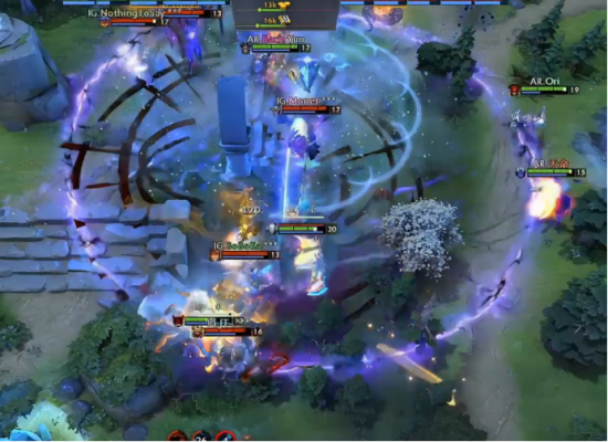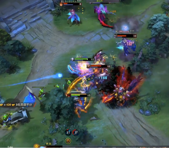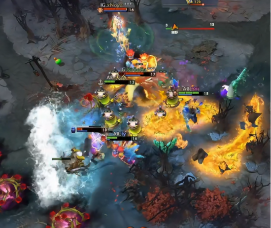 13分钟蝙蝠跳刀出炉就抓到了人马,但IG毫不示弱人马复活后反开雾抓了血魔,再继续跟AR肉搏,二换二双方都能接受。
