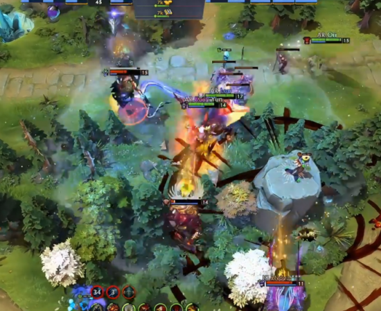 对线AR再次三路优,下路双远程打的伐木机痛不欲生,虽然伐木机摇人杀了小骷髅一次但经济仍落后不少。8分钟蚂蚁也来下帮伐木机,却把拉席克打来,双方二换二。