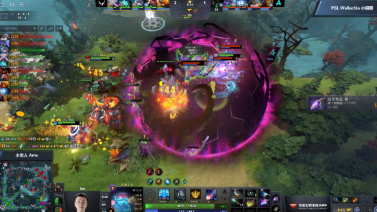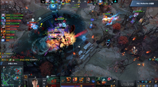 16分半上路虚空大招先手留住电魂配合墨客强行追死电魂,但是击杀太慢被赶来支援的末日蝙蝠收下两人的人头。接着XG大鱼凤凰赶到留下蝙蝠,双方完成2换2。