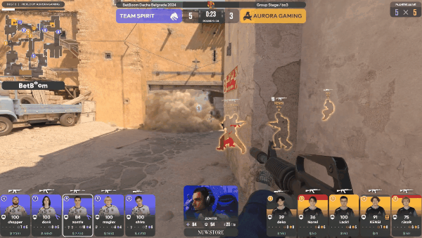 5月15日,别墅杯 2024 迎来了B组小组赛首轮的比赛,本场比赛由Spirit迎战Aurora,最终,在图一多人的出色发挥,图二donk打出31杀的完美个人秀表演的情况下,Spirit以2-0轻松战胜对手,晋级胜者组下一轮比赛。