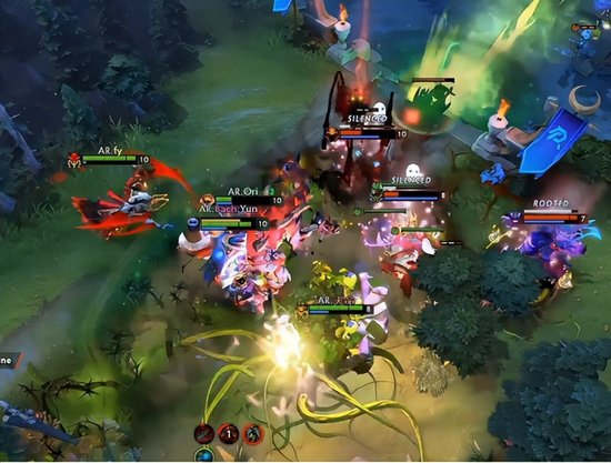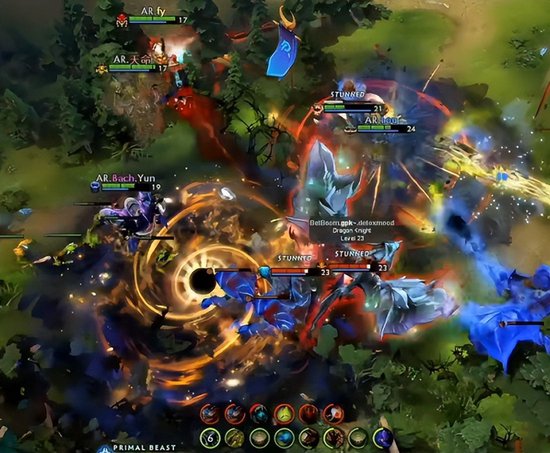 AR准备打盾再上高,BB自然不可能看着AR打,果断前来接战,水人龙骑对着最肉的獸先手却跳到了谜团的脸上两人全被拉住双双白给。BB一溃千里,人马也在高地下阵亡,AR再拆下路。