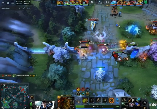 10分钟双辅助入侵下路野区抓到打野的钢背,仅靠冰女松鼠两人便完成击杀。钢背也阵亡,Falcons人头13:3,经济领先4K。