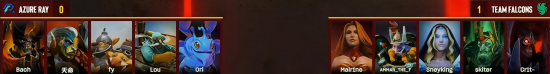 首局比赛AR开局三路大劣,虽中期借falcons失误拖住了比赛,但无奈劣势太大后期仍遭Falcons携巨大经济差距碾压。