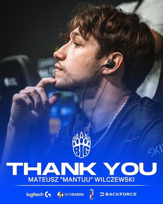 mantuu在去年七月加盟BIG战队,时过境迁,当初BIG那套阵容的新成员中只剩下了David Hesse | prosus一人还留在队内。mantuu和Elias Stein | s1n都被下放以为Jon de Castro | JDC、Florian Rische | syrsoN让路。不过被下放之后mantuu依旧和BIG保持着合同关系,直到今天合同正式结束。