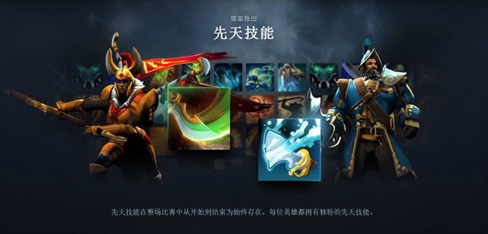 先天技能在整场比赛中从开始到结束为始终存在。每位英雄都拥有独特的先天技能