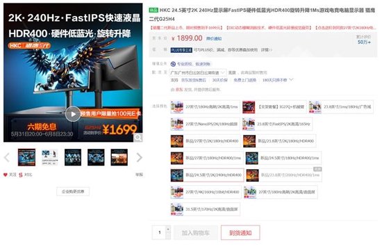 从电商平台得知,这款猎鹰二代新品今晚8点开启预售,在京东平台支付定金,6月9日支付尾款,6月12开始就能陆续收到货。按要求参与官方的晒单活动还能返100元的E卡,实际到手价是1599,结合HKC的品牌知名度和产品的综合性能来说,新品的性价比和竞争力都是非常高的。