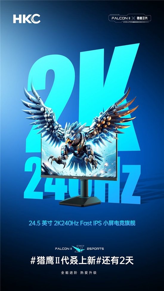 这几天被HKC新品“猎鹰二代”又一轮预热海报给霸屏了,还记得上一批是主打千元内高性价比系列,而这次貌似要主打拥有更极致刷新率的高分小屏电竞旗舰,也因此有一次引起了消费者与数码爱好者的关注与讨论。通过官方近几天的海报,我们也逐渐了解这次“猎鹰二代”新旗舰的“真面目”。