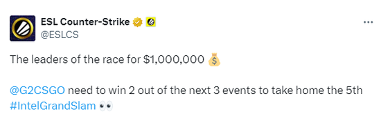 在获得IEM达拉斯冠军之后,G2再次在英特尔大满贯赛道中与MOUZ和FaZe并驾齐驱,站在了同一起跑线上。