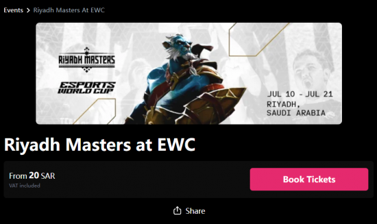 利雅得大师赛举办方现已在售票网站开放DOTA2项目的门票。