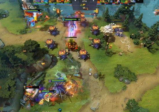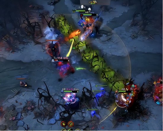 AR尝试利用不朽盾推塔上高,而TZ利用土猫骨法不停拉扯,土猫进进出出大到AR五人硬是没死,打掉虚空第一条命还打残了所有人,二换二艰难打赢团战。