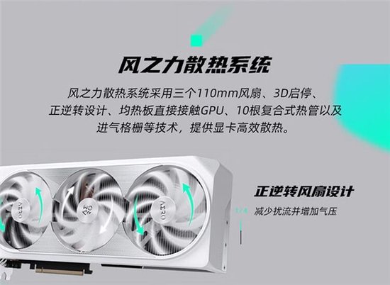 无论是RTX 4070 SUPER、RTX 4080 SUPER还是RTX 4090D,技嘉显卡均支持独特的风之力散热系统,包括3个正逆转风扇,中间风扇与两边转向不同,避免气流互相干扰提高流通率,支持3D启停技术,低温风扇不转降低噪音;同时均采用了均热板和复核热管、进气格栅灯技术加持,即便在显卡满载运行下温度也仅有59°左右,让你在游戏与工作时候显卡随时可以火力全开,避免高温引起了卡顿,保持流畅心情。