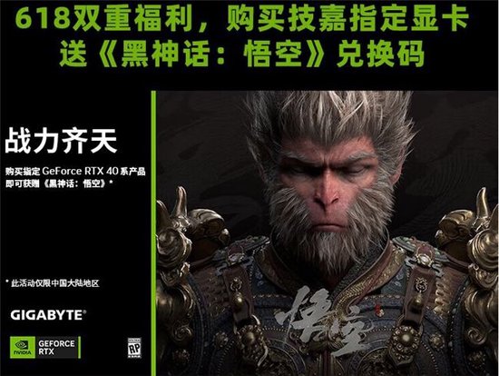 值得一提的是,目前技嘉各大电商旗舰店正在进行活动,凡事购买技嘉RTX 4070及以上显卡(包括搭载相关显卡的整机)的用户有机会免费获得《黑神话:悟空》标准版兑换码一份,加上目前618期间技嘉显卡优惠价格活动,双重福利加持,正式入手的最佳时机。