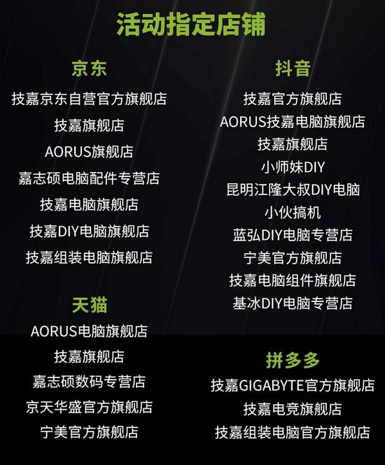 第一步:在6月18日23:59分之前,在指定店铺购买技嘉GeForceRTX 4070 及以上GeForceRTX 40系列显卡或搭载上述显卡的电脑整机(包括GeForceRTX 4070/4070 SUPER/4070 Ti/4070 Ti SUPER/4080/4080 SUPER/4090 D)即可参与。