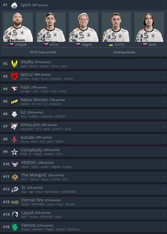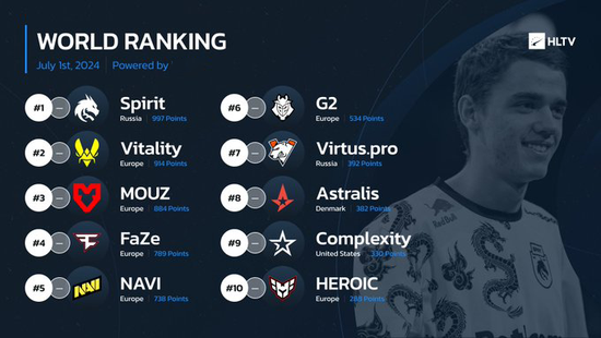 今天HLTV继续公布了本周的世界排名,而鉴于排名公布的时间正好处于休赛期中段。大部分职业选手还在游山玩水当中,Top30战队都刀枪入库、马放南山。因此本次世界排名对比上周没有变动。