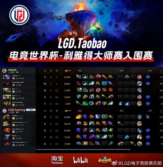 第一局 LGD 1:0 nouns,人头 25:18,用时 45 分 04 秒