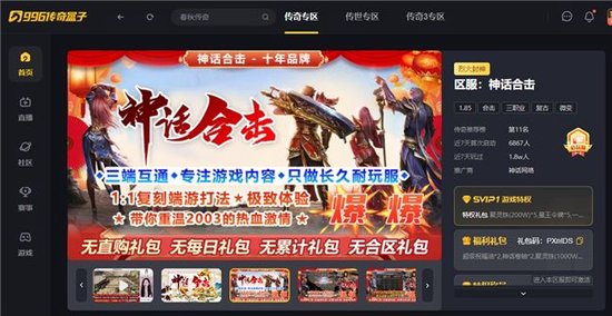 云游怀旧服单区最高可负载十万人同时在线,是996传奇盒子上的一款复古大区。而且经久耐玩,一年仅开放一个大区。