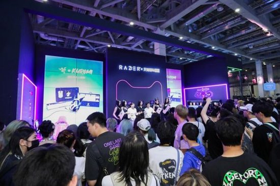 Razer展台吸引了众多玩家的热切关注,现场氛围热烈而活跃。玩家们兴致勃勃地体验各种新品,展台周围始终围绕着热情的粉丝。众多知名UP主也纷纷现身助阵,与粉丝们近距离互动,将现场气氛推向高潮。