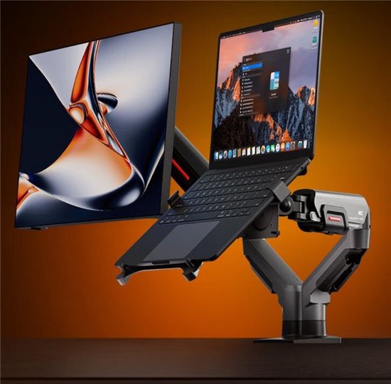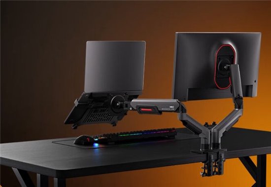 两条机械臂均支持2-9kg的承重,显示器臂可承载17-27英寸的显示器屏幕,另一边则能够轻松承托10-17英寸的笔记本,这个组合完全能够满足日常办公需求,一边是负责处理沟通信息的笔记本屏幕,一边是负责浏览文档网页、编辑书写的大屏,二者相互配合高效办公,是许多打工人梦寐以求的理想办公环境。