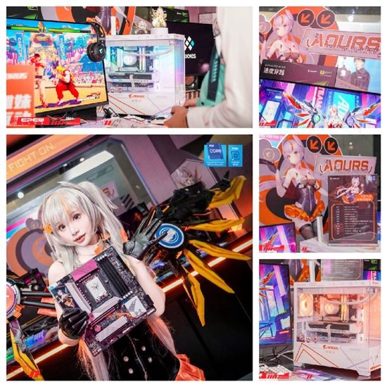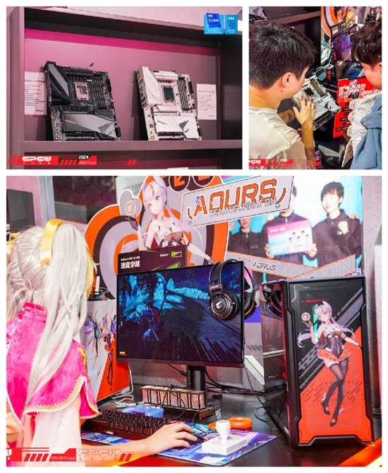 除了这些颜值与性能都相当给力的技嘉AORUS主机之外,雕妹的到来也是人气的保证。 技嘉 AORUS 展区摆满了技嘉 AORUS 电竞产品及雕妹周边,二次元们跟与多位不同皮肤造型的雕妹 COSER 进行互动游戏,赢取精美好礼。比大小、AI 拍立得摄影、掷骰子,简单又有趣。无论输赢均可以获得纪念奖品,到场观众或单人挑战,或组队参加,都享受到了极致的快乐。
