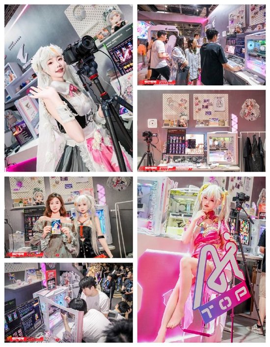 另外一个就是深受玩家喜爱的AI体验区,用可爱的雕妹女仆造型定制的主机俘获不少玩家喜爱,这次除了外型外,这台主机的内在还是必须要提的由全球限量300套的的钛金雕板卡领衔,搭配 i9-14900KS 处理器、龙耀 D500G 技嘉联名内存、360 冰雕 X 水冷以及 AORUS 机械雕 AC601 机箱,超强性能加上纯白高颜值,引来无数玩家驻足体验。在AI TOP 区,雕妹掌镜,为前来体验的玩家拍摄照片,在主机上通过stable diffusion实时生成专属的AI头像并打印留存,充分展现了这套主机的超强算力。