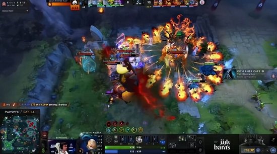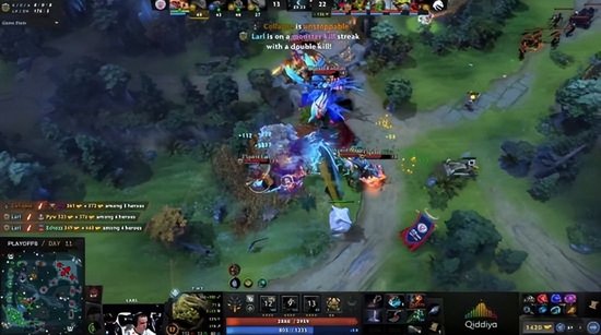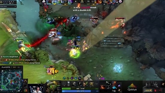 15分钟Spirit又一次在下路小吃街找到巨魔,极限开出大招的巨魔却吃了doom,大牛接踩让巨魔大招结束后被烫死,同时LGD想救的人也被Spirit留下,一波打完Spirit已经领先了4K的经济。