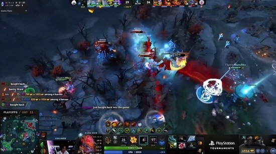 17分钟Spirit开雾偷掉一代盾,LGD想卡住Spirit的退路,马尔斯大招留住拍拍,不过DS反手一个真空拉了三人上山,冰女放大但被影魔大招打断,马尔斯和冰女互换后LGD开始撤退。