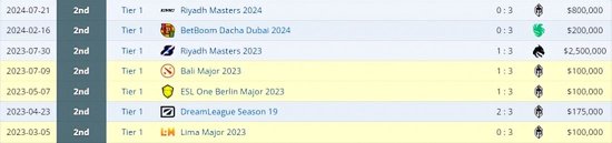 而在本次决赛再度失利后,Team Liquid完成了一项颇为尴尬的记录:自2023年3月的利马Major以来,他们7次打入Tier1赛事决赛,7连败收获7个亚军。这其中,Liquid一次在去年的利雅得大师赛中输给Team Spirit,一次在今年年初的别墅杯中输给Team Falcons,剩下的5次全部败于GG战队之手。
