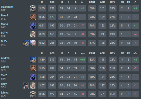 首图DRX在自己的选图上似乎没有了小组赛时的锐利,虽然在Sentinels领先时他们逐渐稳下军心将比赛拖进加时,却在一股气卸力之后败下阵来,来到Sentinels的选图隐士修所后基本没能打出什么效果,被Sentinels轻松带走。