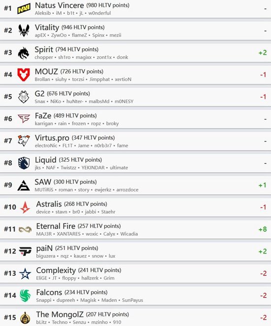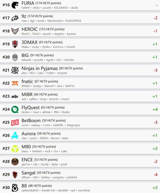 对于新读者和忘记了规则的读者,以下是HLTV世界排名的运作依据: