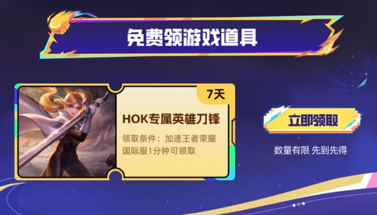除此以外,只要登录迅游手游加速器就可以直接领取HOK限定英雄刀锋英雄体验卡。