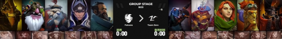 第一局Falcons的打架阵容在对线期就打出很大的优势,无解肥露娜控盾一路平推,Zero在守高团连续被团灭后敲出GG。