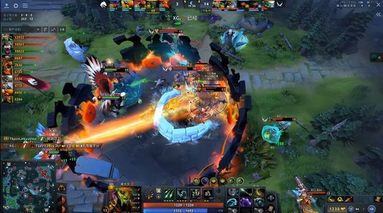 12分钟XG五人中路集结击杀全能以后推掉中路一塔。13分半Spirit4人开雾,跳刀夜魔开大直接单杀上路打钱的POM,Spirit另外三人则冲进天辉远古抓死TK,XG众人赶来支援,蓝猫收下全能和电炎绝手止损。