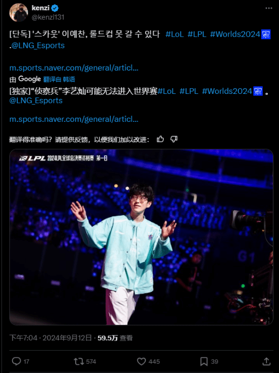 此外,LNG官方也在今天发文回应:“大家好,在世界赛积极备战的关键时刻让大家收到了这样的消息,我们的心情和大家是一样的。俱乐部和选手本人都十分重视和珍惜此次世界赛,我们也一直在竭尽全力地和Scout选手一起去解决这个事情。Scout选手一直以来的职业态度和付出大家也有目共睹,目前结果尚未定论,希望会有好的消息。”