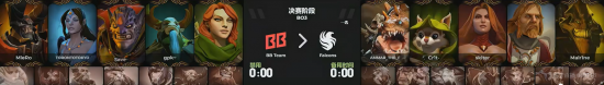 选人分路:中路Falcons电魂对BB蓝猫,上路松鼠人马对大牛保美杜莎,下路白虎保龙骑对末日老奶奶。