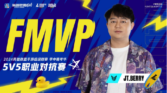 其中,队员Berry的表现尤为亮眼。几次关键团战的灵性走位和完美的技能释放,直接帮助JT战队锁定胜局。而凭借这一系列出色表现,Berry当之无愧地获得了FMVP称号。