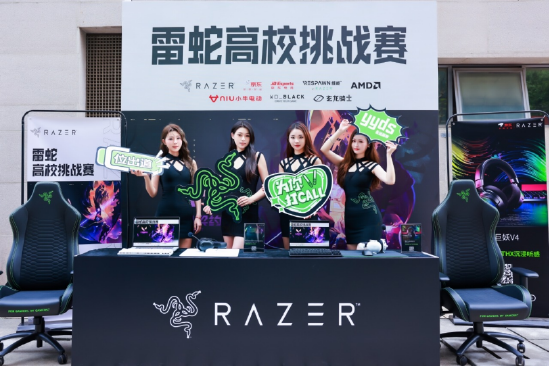 雷蛇SG的美丽助阵,为现场气氛持续加温,漂亮的SG小姐姐也为同学们加油助威。