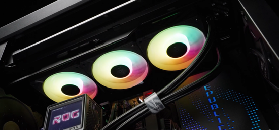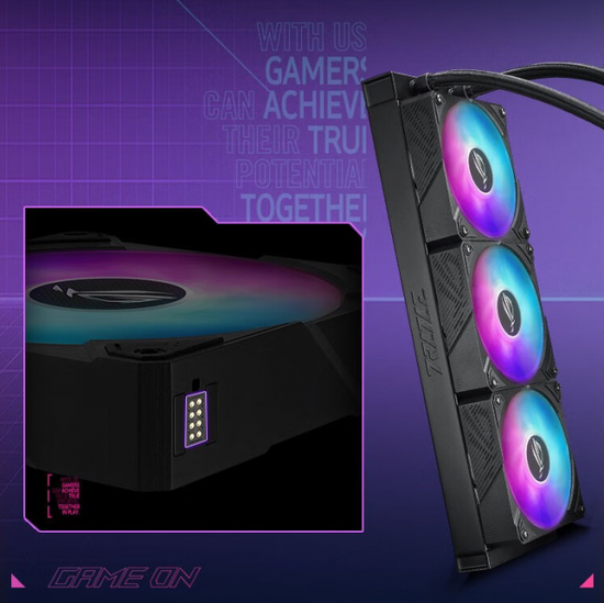 值得一提的是,该水冷散热器还搭载了ROG MF-12S ARGB EXTREME风扇,风扇采用三相6极电机和9叶风扇设计,搭配30mm加厚框架,实现了5.15mmH₂O静压和89.73CFM风量,大幅提升散热效果,这意味着无论是面对高强度的游戏挑战,还是长时间的使用需求,该款水冷散热器都能轻松应对。